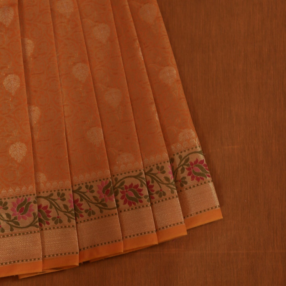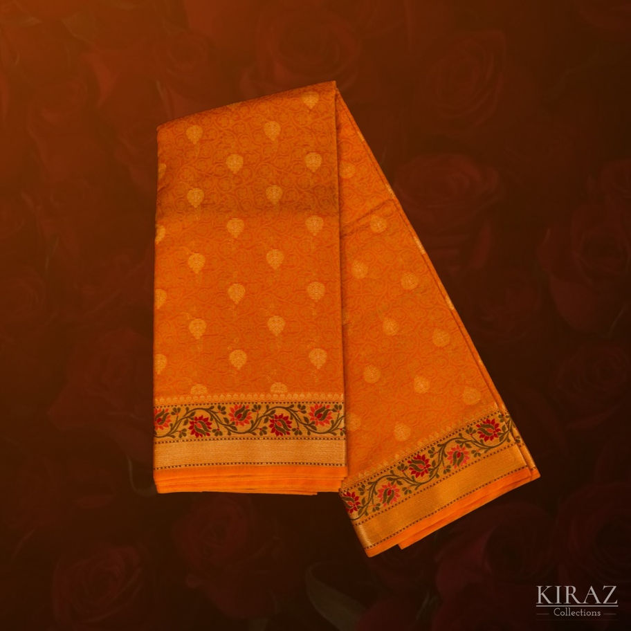 sunset orange yelow with brocade flower Banarasi sarees blend the classic charm of centuries-old tradition for every occasion ...